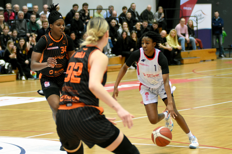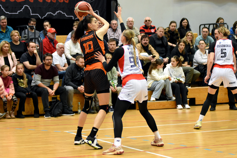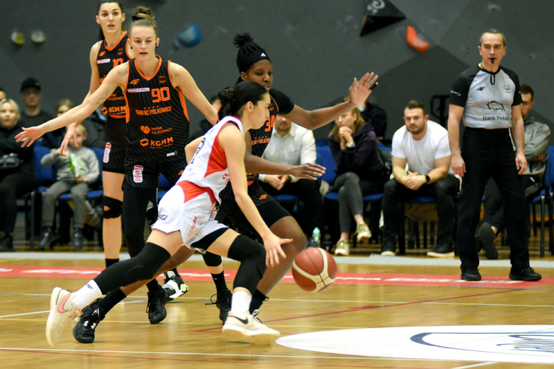 Początek meczu gospodynie zaczęły bardzo dobrze i po trafieniu z dystansu prowadziły 7:6. Jednak z minuty na minutę to polkowiczanki obejmowały inicjatywę na parkiecie. I w ósmej minucie prowadziły już 11:21 a pierwszą kwartę zakończyły wynikiem 15:25.