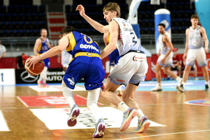 Początek spotkania to świetna gra torunian, którzy prowadzili w pierwszej kwarcie już 25:8. Gdynianie jednak po czasie wziętym przez trenera próbowali dogonić gospodarzy, co poskutkowało tym, że pierwsza kwarta zakończyła się dla torunian wynikiem 28:18. Druga kwarta była bardziej wyrównana, jednak Twarde Pierniki wygrały ją 24:16. Drużyna gospodarzy schodziła na przerwę w radosnych nastrojach – na tablicy widniał wynik 52:34.